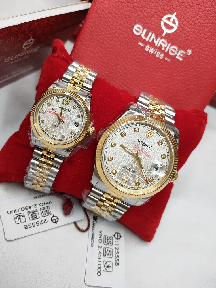 Đồng hồ cặp Sunrise cực hot, là một trong các mẫu thiết kế đình đám, bán chạy nhất của Sunrise chính là dòng đồng hồ đính đá, mặt số cao cấp, sang trọng. Chất liệu vỏ bằng thép không gỉ 316L, chống siêu ăn mòn, giữ vẻ đẹp sáng bóng cho đồng hồ. Máy Japan quartz cực bền