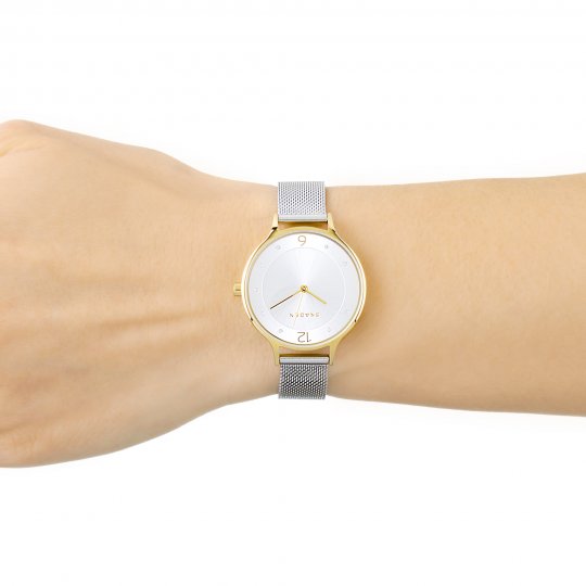 Đồng hồ nữ Skagen SKW1068 có thiết kế tổng thể đơn giản với dây lưới bạc, mặt trắng và viền vàng tạo nên sự nổi bật, quyến rũ cho phái đẹp